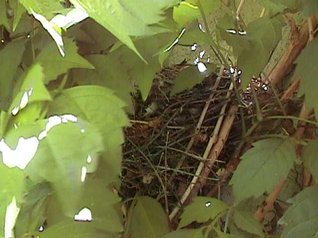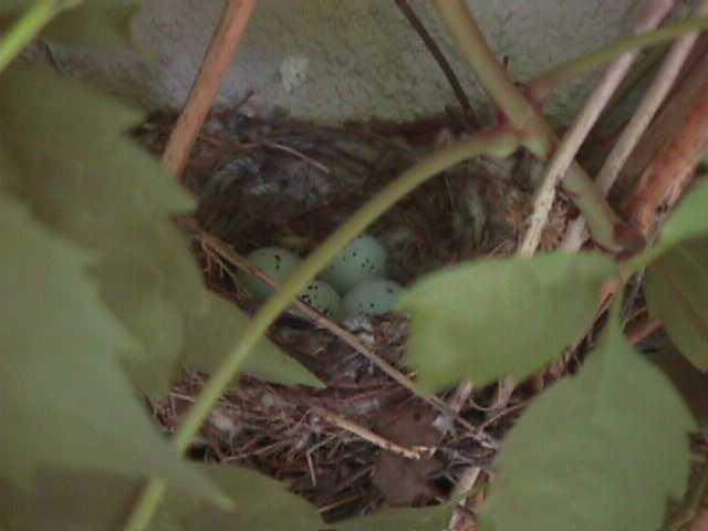 I love all birds, not just parrots. I discovered a nest in my back yard because every time I walked by, a bird flew out of a vine, seemingly from nowhere. The trumpet vine climbs up the wall by secreting some kind of adhesive.
